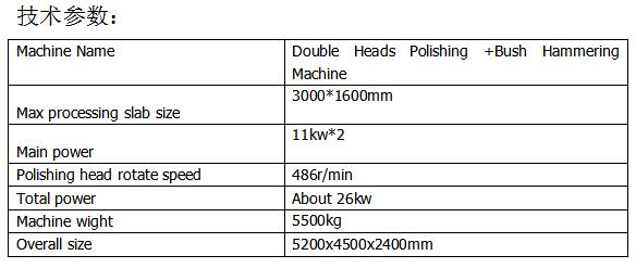 QLQM-2 bridge-type double-heads polishing and bush hammering machine, the machine uses a large-span bridge-type end beam structure. The girder and side beam are guided by sealed oil-immersed linear guide rail, with long service life, high processing accuracy and advanced control system. The grinding head can be used for polishing head or litchi surface grinding head, which truly realizes one machine for two purposes.